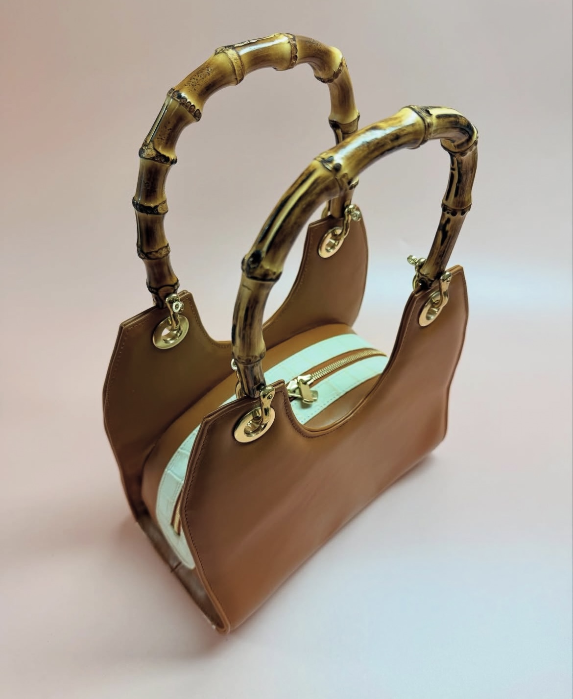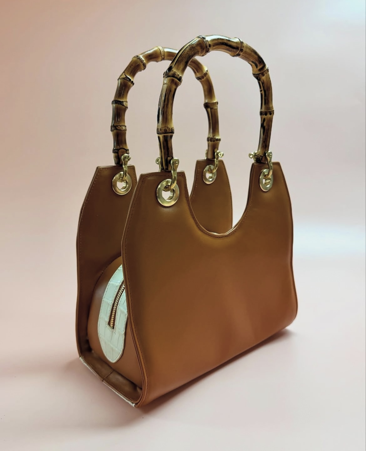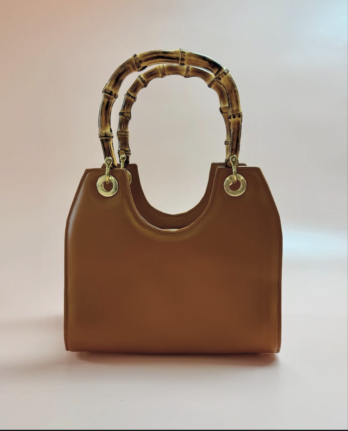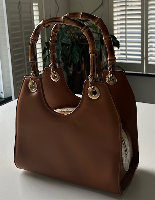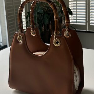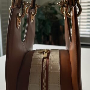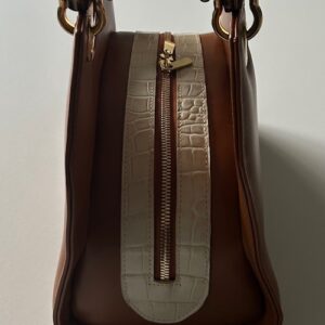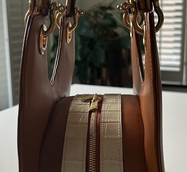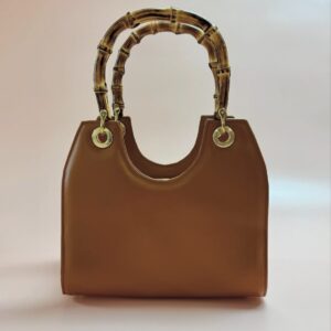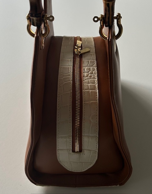 - buitenkant tas: cognac rundleer