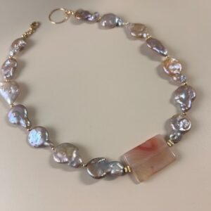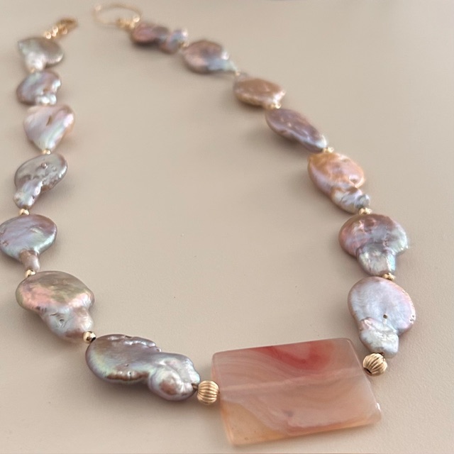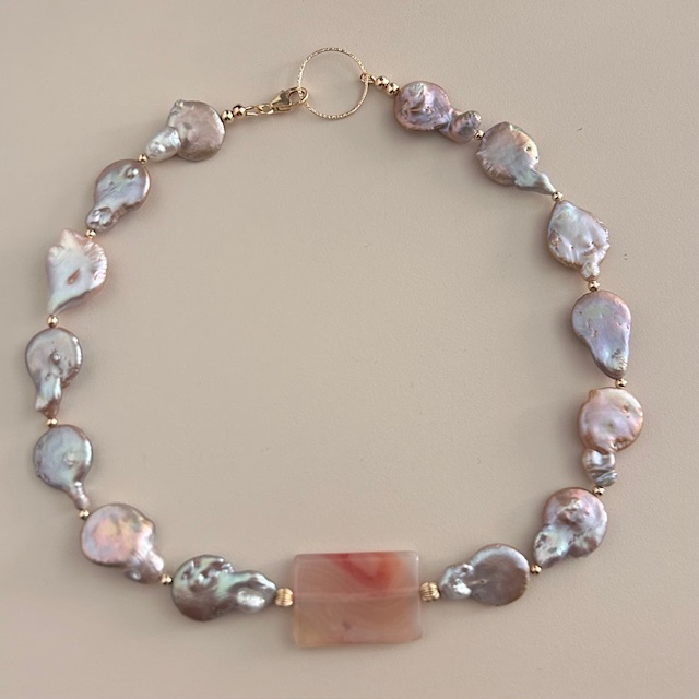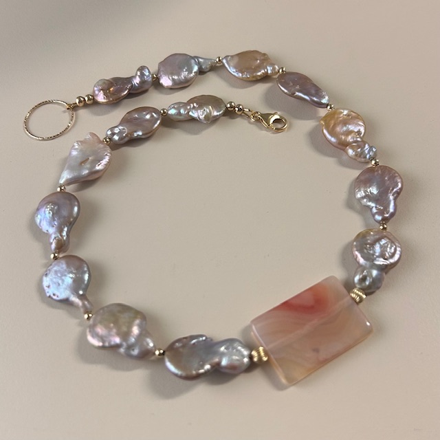 ketting agate pink parel