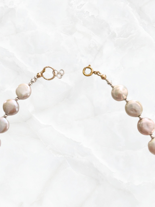 • tijgeroog • coinparel • goldfilled • sterling zilver • totale lengte ketting ca. 45,5 cm